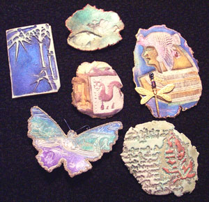 - Press rubber stamps, natural objects, or other items into the Paperclay® to make a design. Cut or tear the edges of the clay around the design.