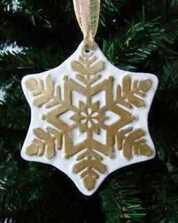 9. Make a hole in one of the snowflake points with an awl or clay tool.
